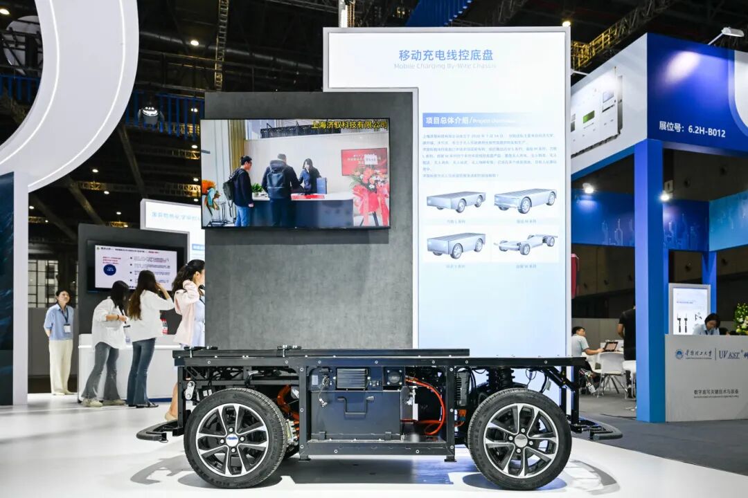 由汽车学院校友创立的上海济驭科技无限公司专注于无人驾驶通用化线控底盘的研发和出产。公司量产的多款线控底盘笼盖无人充电、无人物流、无人配送、无人消杀、无人巡查、无人特种车等多个使用场景。此次参展的挪动无人充电宝展车所利用的是由济驭研发的高压驱动版底盘,较保守无人充电宝底盘正在系统方案上全面领先,并大大节约了成本。